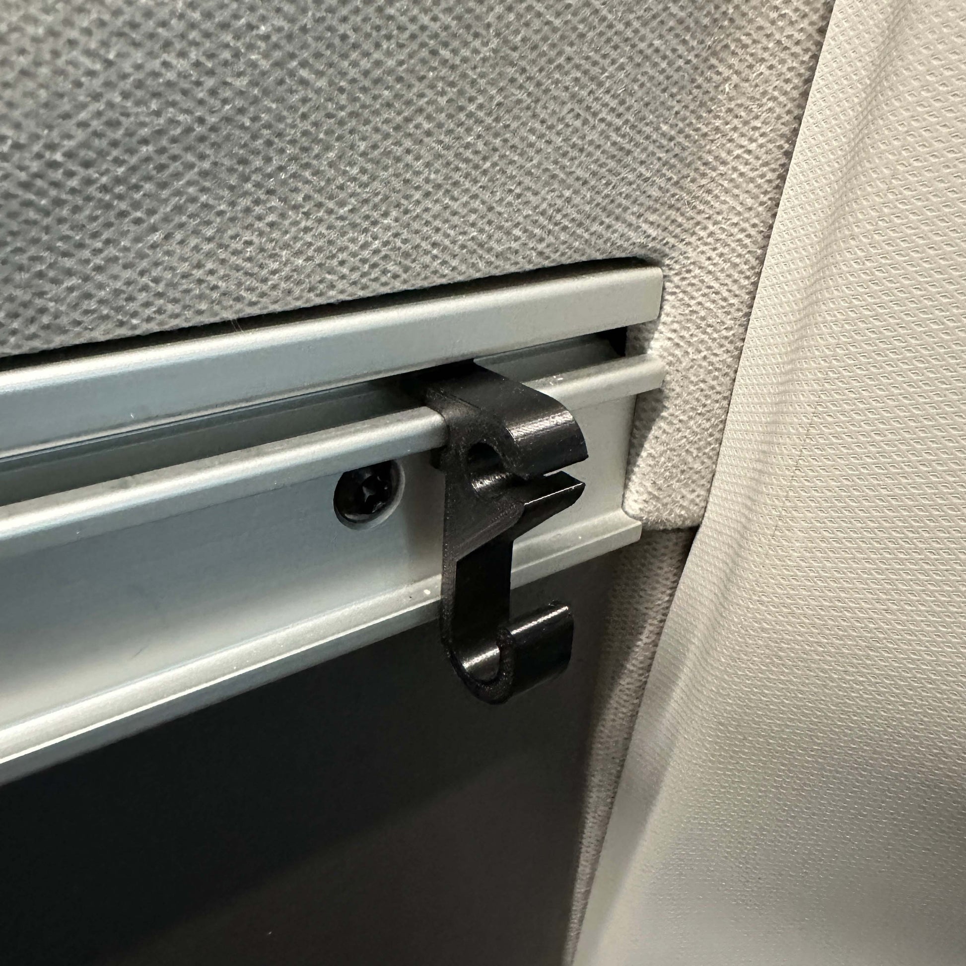 Für den Flextrashmülleimer gibt es ab Hersteller verschiedene Befestigungsmöglichkeiten (Glatte Fläche, Kopfstützen, Tischplatte). Das Produkt von VANhackers ermöglicht jetzt die bequeme Anbringung des Mülleimers in der California-Tischleiste. Eine einfache und pfiffige Lösung.