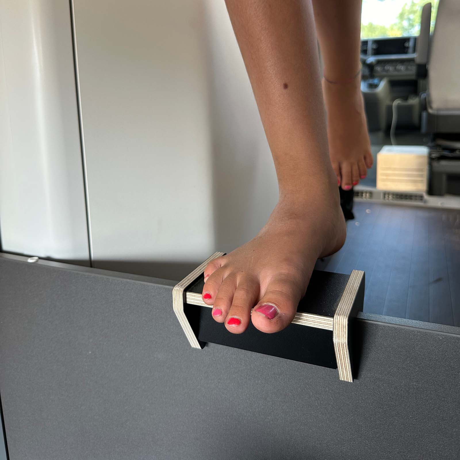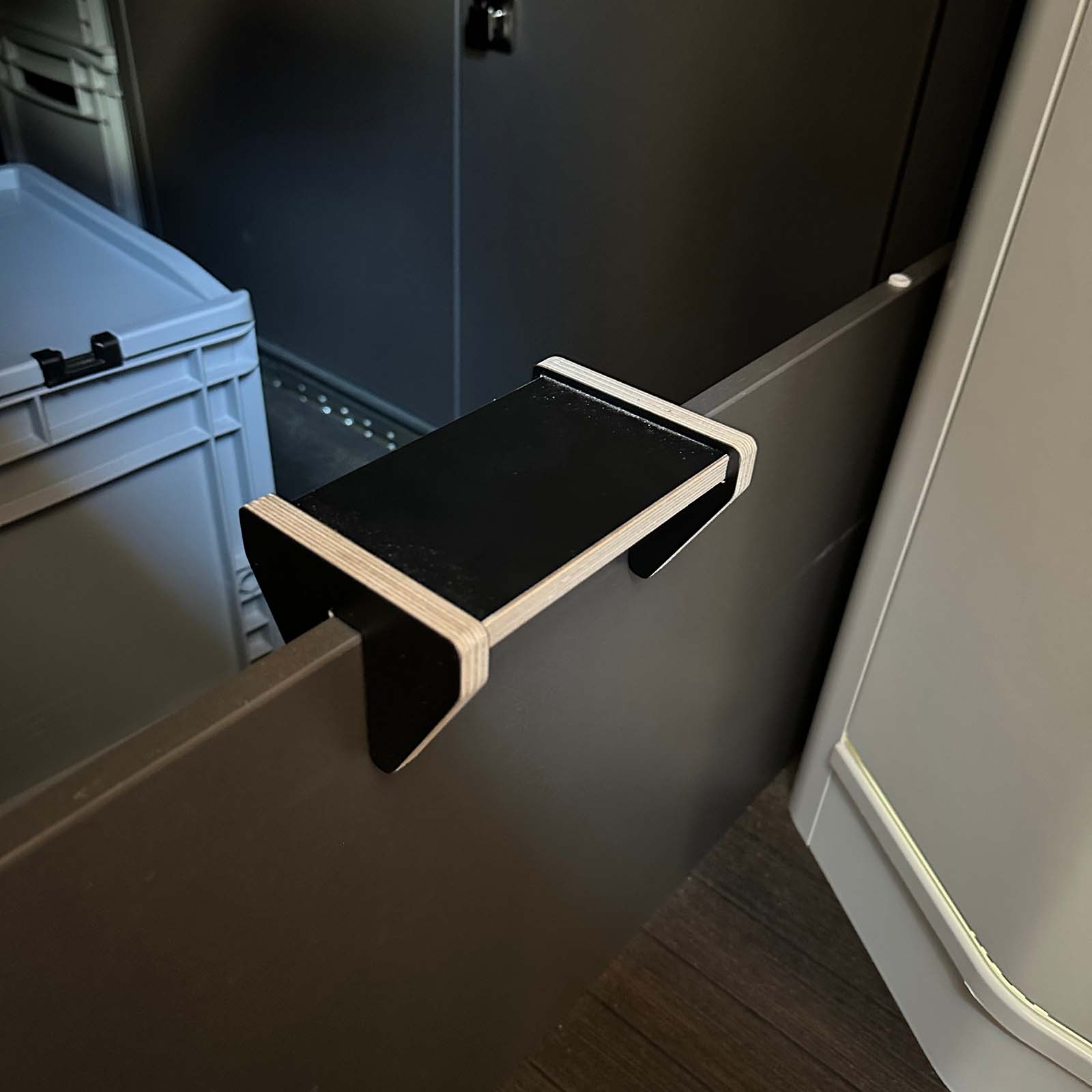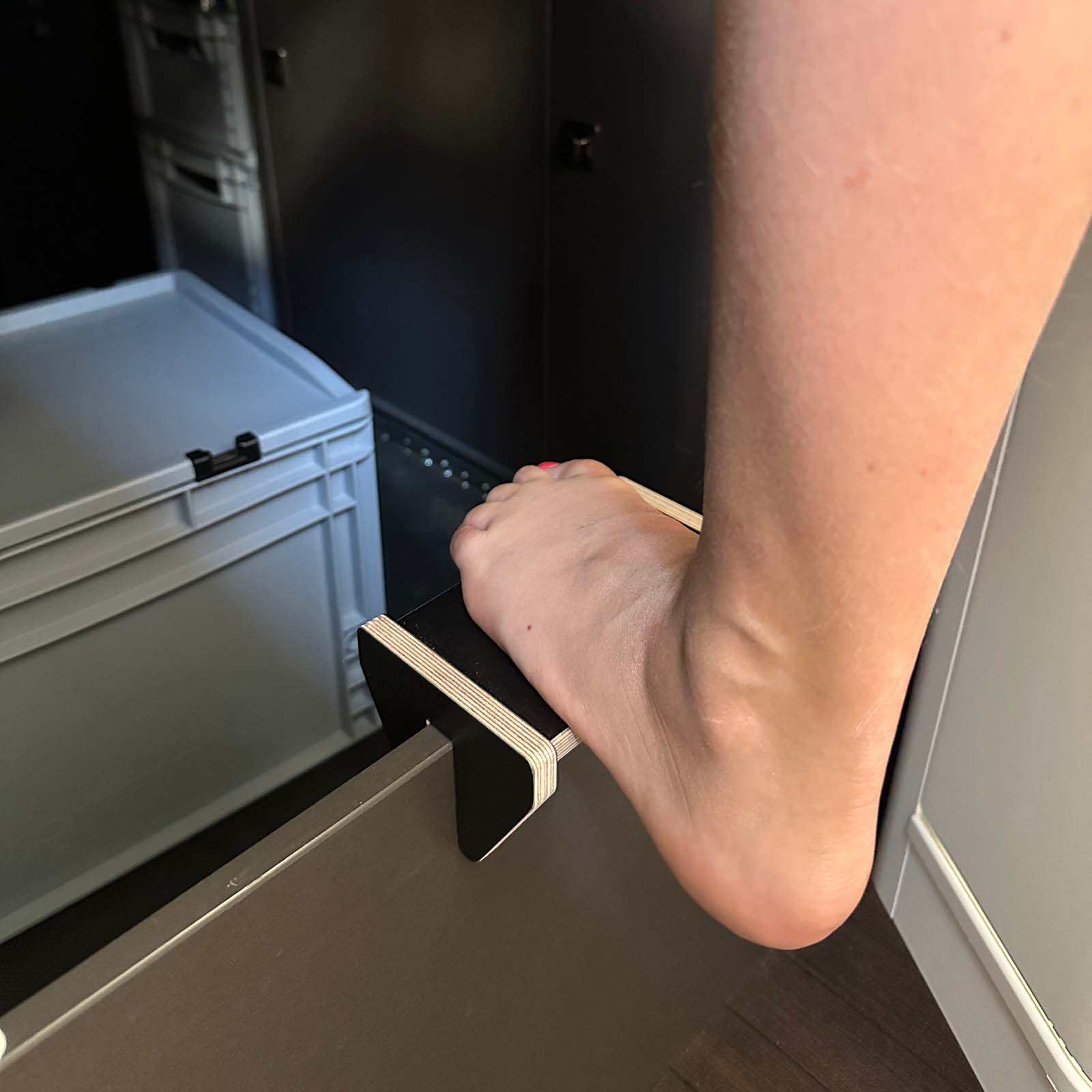Fehlt euch auch der letzte Zentimeter beim Einstieg in das Grand California Bett? Wir haben die Perfekte Lösung für euch. Unsere Aufstiegshilfe erleichtert euch den Einstieg ins Bett. Die Trittstufe wird einfach auf die untere Trennwand gesteckt und dient euch von nun an als kleiner Helfer beim Einstieg ins Bett.